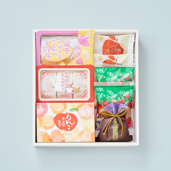 内容量 りんごかもめの玉子×3個、お芋わかきもかもめの玉子×3個、紅茶香 る かもめの玉子×3個、黄金の七郷×1個、めんこいりんご×2個、りんご日和×2個